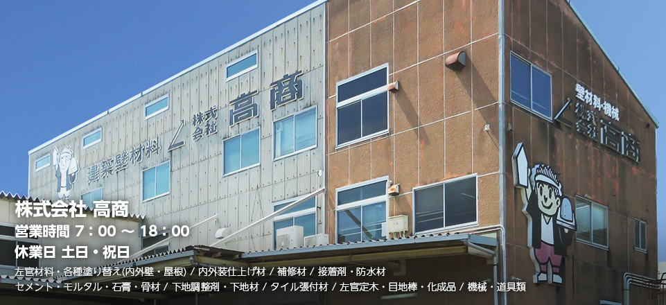 株式会社高商は壁材・左官材料・各種塗り替え材料を中心に幅広い分野の建築資材を販売しています。